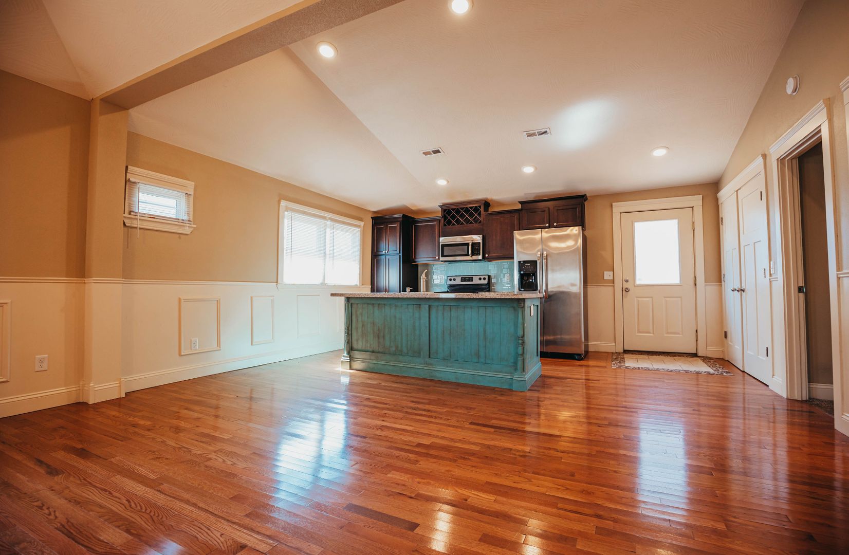 Inside, you'll find an open floor plan featuring vaulted ceilings that add a touch of elegance and plenty of natural light. The kitchen boasts a large island with granite countertops and a double sink—ideal for easy meal prep and entertaining. Stainless steel appliances and ample cabinet space complete the chef’s kitchen.