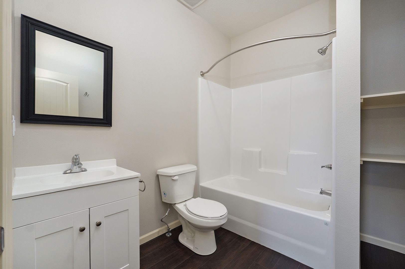 There's a dedicated laundry room with washer and dryer hookups, plus an extra storage closet for all your gear. Off-street tenant parking is available, and both trash and yard service are included in the rent.